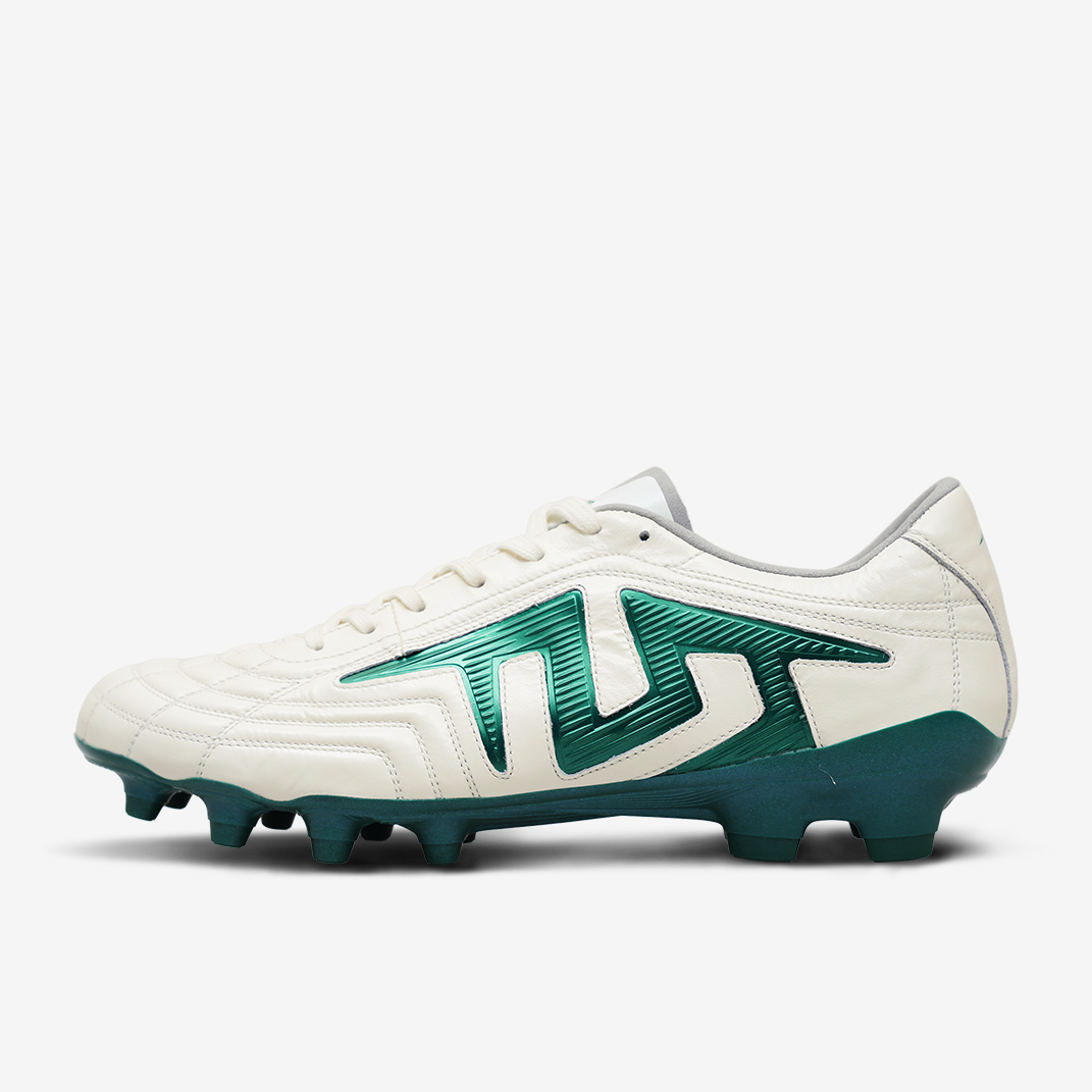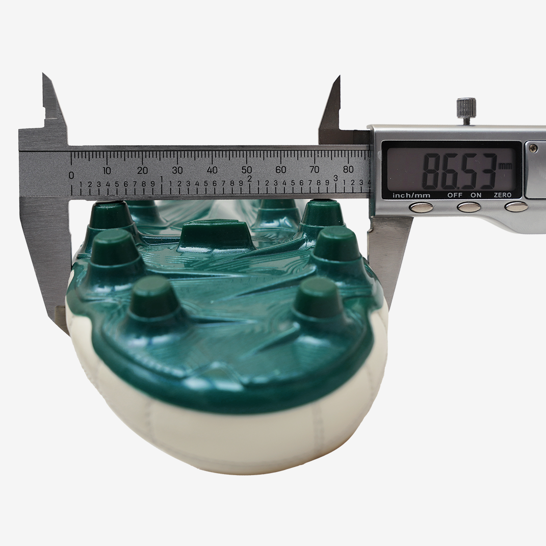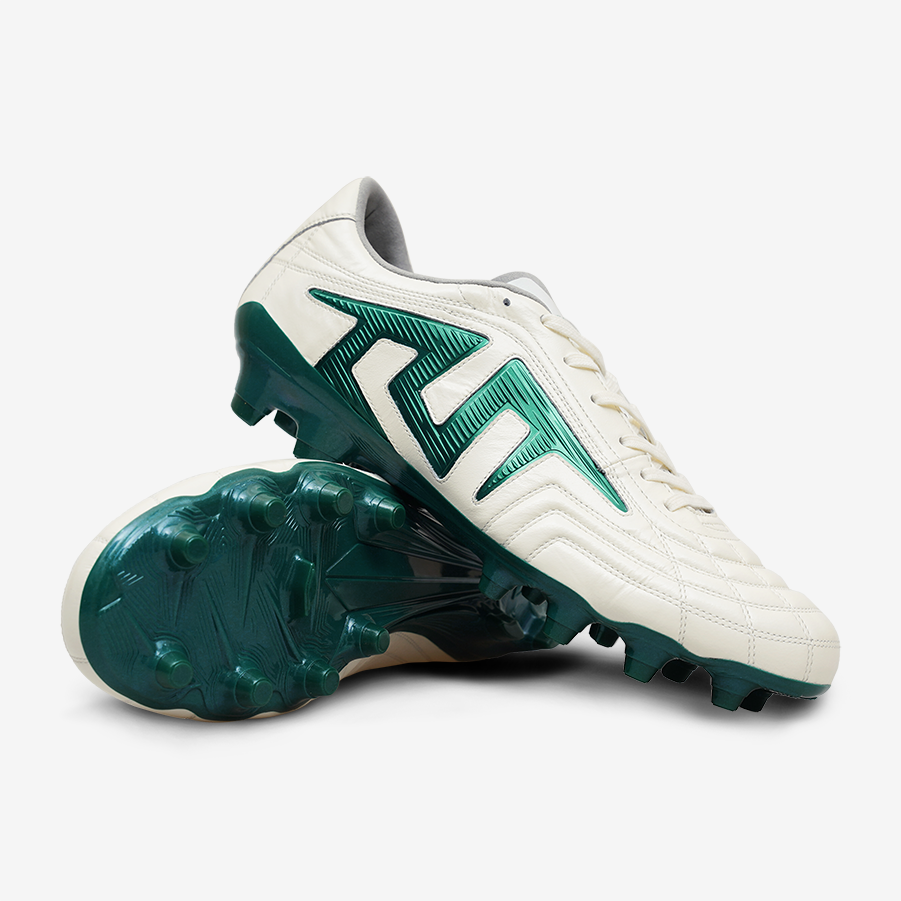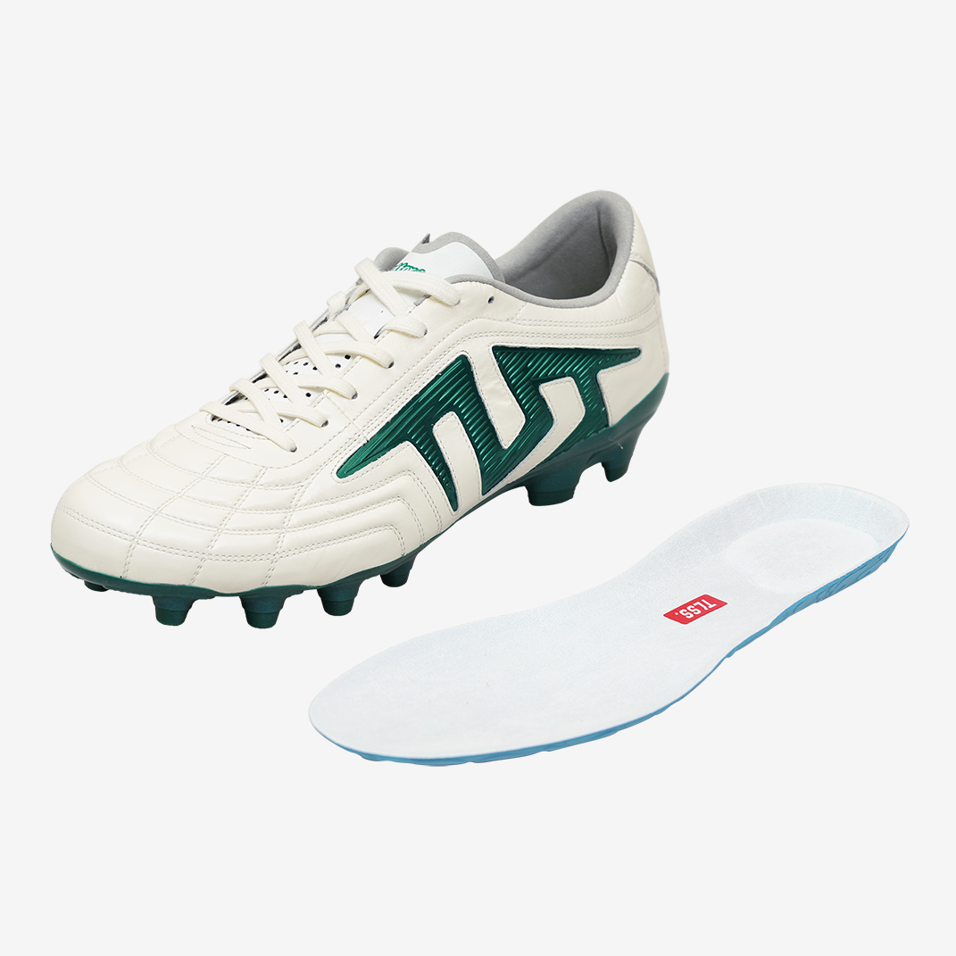 PEBAX+TPU FGスタッドソール:軽量・耐摩耗、天然芝で優れたグリップ力、前足部KaRVOプレートで高反発、中足ねじれ制御、後足安定性